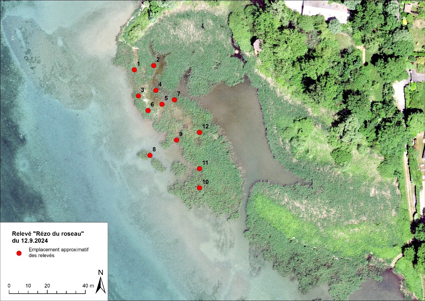 • Analyse de l'évolution de la roselière sur la base des images aériennes et relevés de terrain